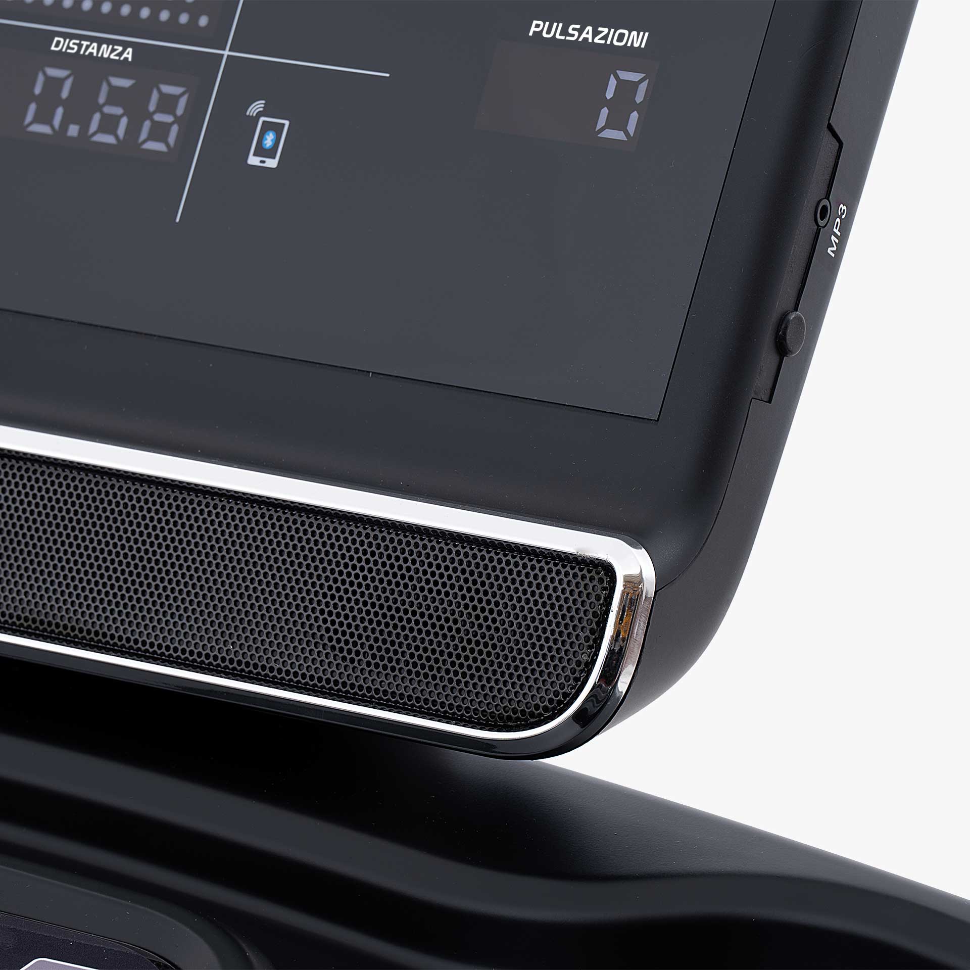La console è dotata di due casse audio HI-FI, due vani porta borraccia/oggetti, un ingresso audio USB, ingresso audio jack, una uscita USB per ricaricare i propri devices durante l’allenamento. È possibile connettere alcune App motivanti e divertenti per rendere le sessioni di allenamento stimolanti, quali: Zwift, Kinomap (abbonamenti non inclusi).