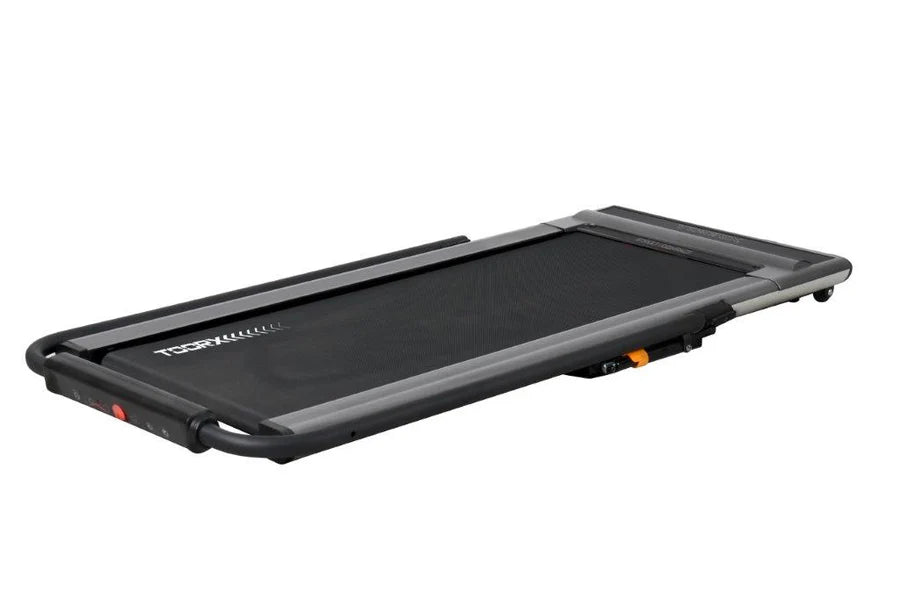 Toorx Street Compact: in dieci centimetri di spessore un vero tapis roulant con piano corsa largo ben 46 cm., velocità fino a 10 km/h, console a led bianchi, programmi d’allenamento, corrimani a norma EN 957 e un look sofisticato e tecnologico.