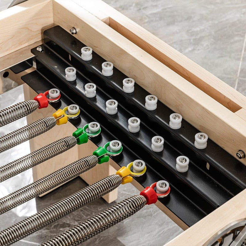 L'attrezzo per Pilates Cadillac tre in uno in Acero è un attrezzo multifunzionale ideale per chi desidera allenarsi in modo completo e professionale. Realizzato in legno di alta qualità, offre stabilità e resistenza, perfetto per eseguire esercizi di stretching, tonificazione e allineamento posturale. Grazie al suo design versatile,l'allenamento di pilates con Cadillacè adatto sia tutti i praticanti, perché permette di eseguire sia esercizi base che avanzati.