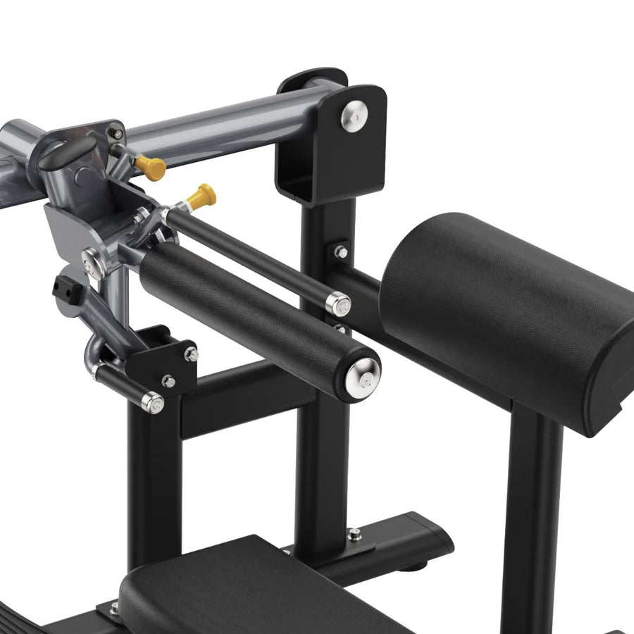NOVITA' 2024 - Stazione Plate loaded per uso professionale a marchio Toorx. Hip Thrust con peso massimo caricabile di 200 kg. Struttura tubolare in acciaio a sezione ovale piatta 60x120 mm - spessore 3 mm. Bracci di movimento in acciaio rinforzato a sezione circolare ø 76 mm - spessore 3 mm. Cuscini in schiuma ad alta densità con rivestimento in PU. Verniciatura doppia a polveri epossidiche, antigraffio. Trattamento dei tubolari con sabbiatura e fosfatazione. Sistema di cuscinetti POWER GRADE per garantire uno scorrimento preciso e progressivo. Pedana di appoggio con inclinazione 20°. Regolazione altezza rullo di spinta su 3 posizioni, rullo pivottante su 10 posizioni per un comodo ingresso alla macchina.