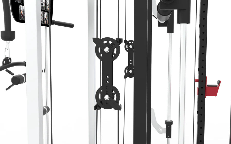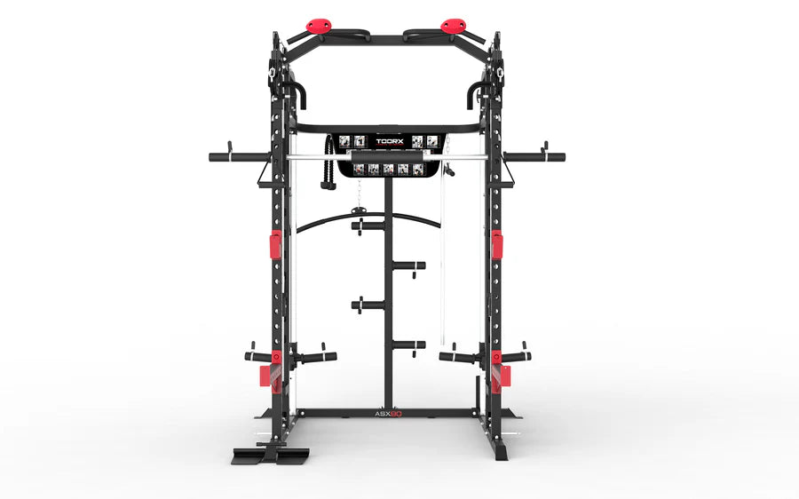 La stazione All In One ASX-90 si inserisce, quale entry level, nell’ampia gamma delle “all in one” di Toorx questa versatile 3 in 1 che riunisce, in una sola macchina, una dual pulley e una smith machine a caricamento dischi ed un rack funzionale completamente accessoriato.